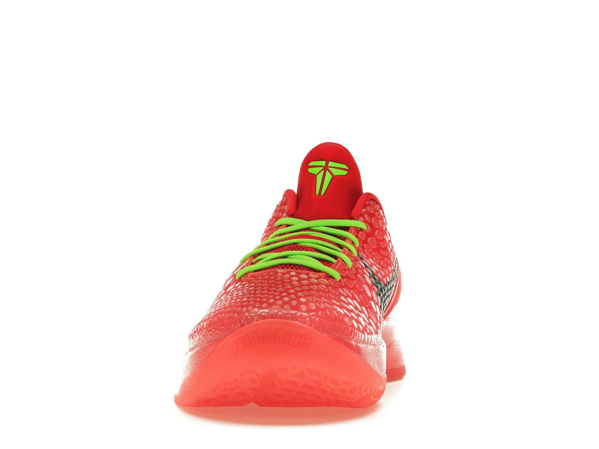 Beyond its captivating color scheme, the Nike Kobe 6 Protro Reverse Grinch boasts exceptional performance features. The responsive cushioning and supportive structure ensure optimal comfort and stability, whether you’re dominating the court or making a statement on the streets. The cohesive design, with the Bright Crimson midsole and heel counter, ensures the shoe maintains its bold look from every angle.